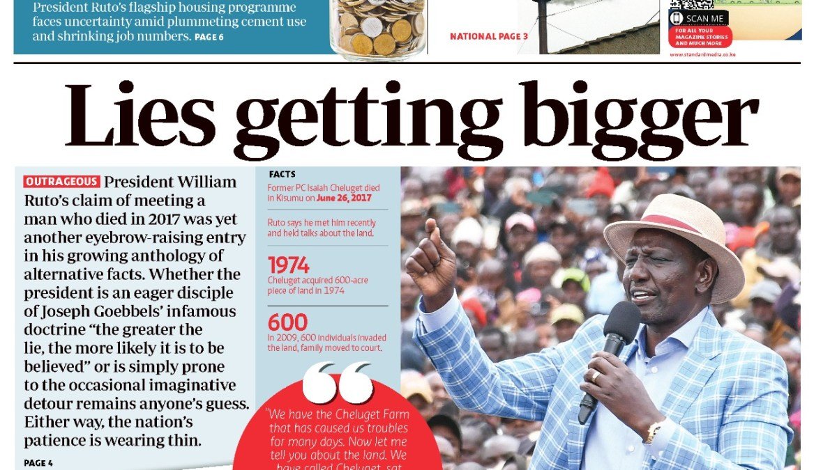 وجهت صحيفة “ستندارد” انتقادا شديدا للرئيس الكيني وليام روتو، واتهمته بالكذب في تصريحات أدلى بها خلال جولته الأخيرة في مقاطعة ناروك.