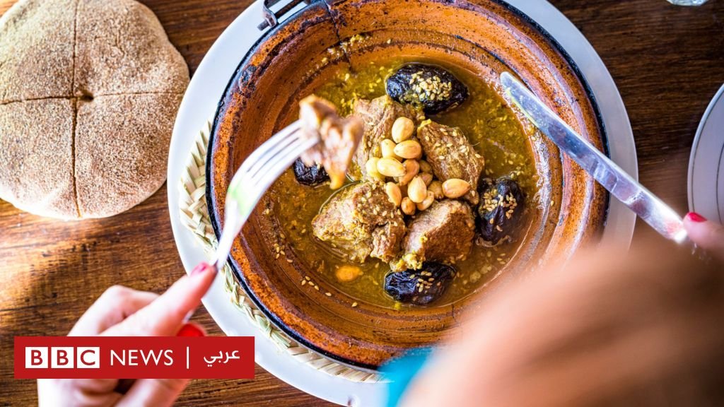وأضاف “بعدها نزيل أعواد القرفة ونرصّع بخليط البرقوق واللوز المقلي والسمسم المحمص، ويقدم الطاجين بأناقة مع الخبز المغربي” كما أوضح في مقطع مصور أهداه حصرا لبي بي سي على حسابه على مواقع التواصل الاجتماعي.